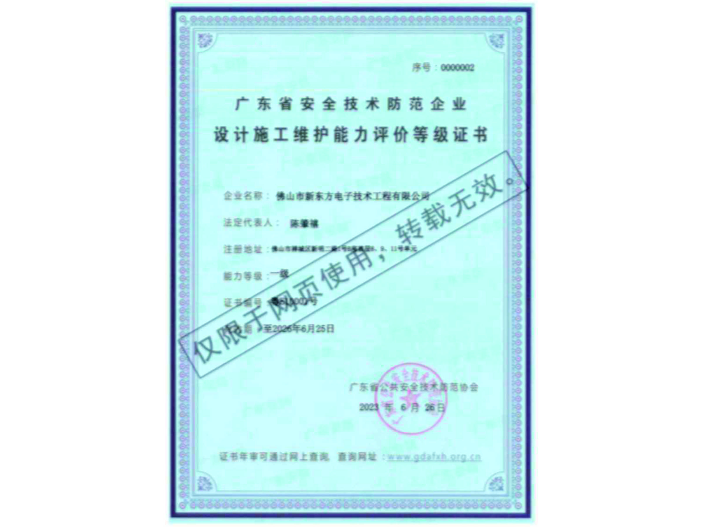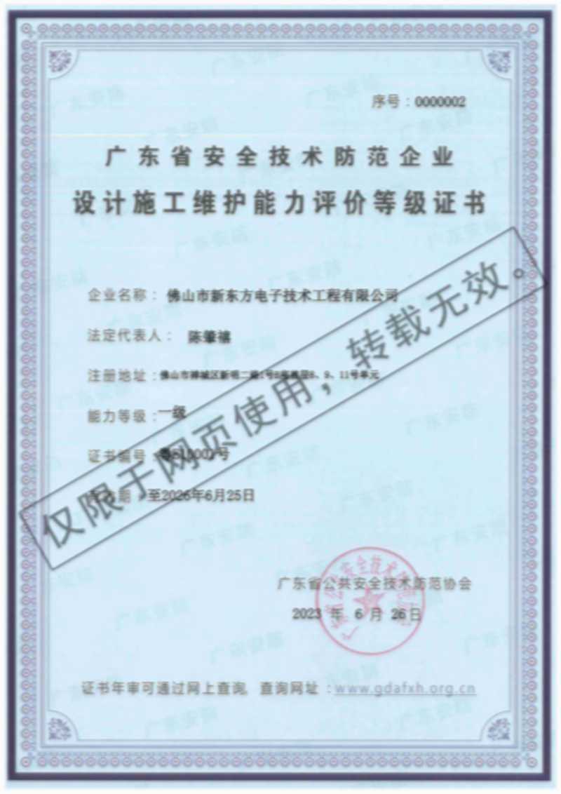 廣東省安全技術防范企業設計施工維護能力評價等級證書(2023年-2026年)
